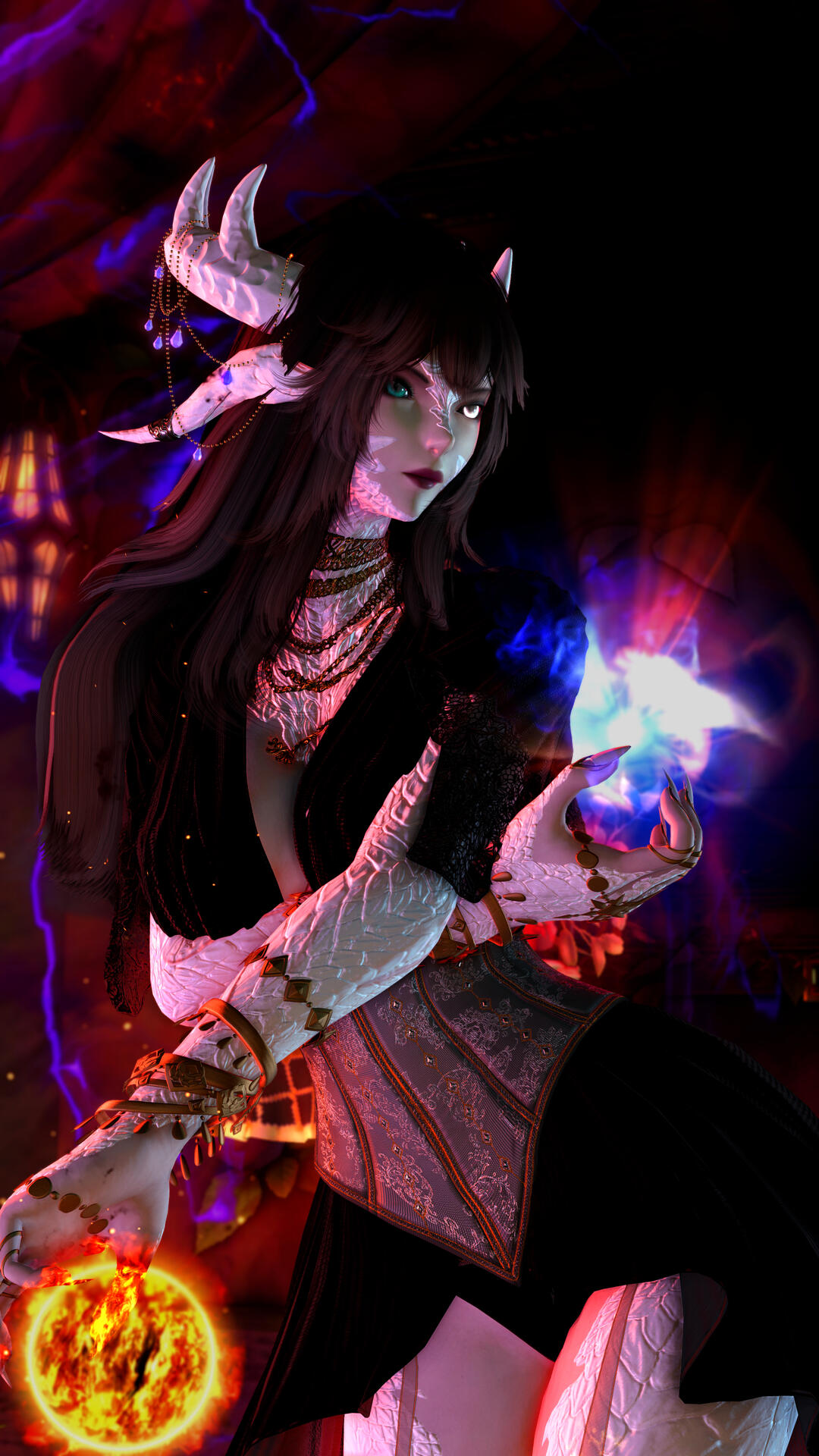 Due to her eating of dragon eyes, she is able to transform into a dragon form. Rarely is this done, however, for she fears one day she might not turn back. Transformation can also be fueled by her emotions, and so she trained extensively to remain calm at all times. Her dragon form is unlike those seen from heretics who've consumed dragon's blood; she looks closer to a dragon than hybrid, and her stature is massive when in this form. As a dragon, her affinity for magic is greatly increased and she is capable of much greater feats. Her magic can be devastating, but for now it requires her dragon form.