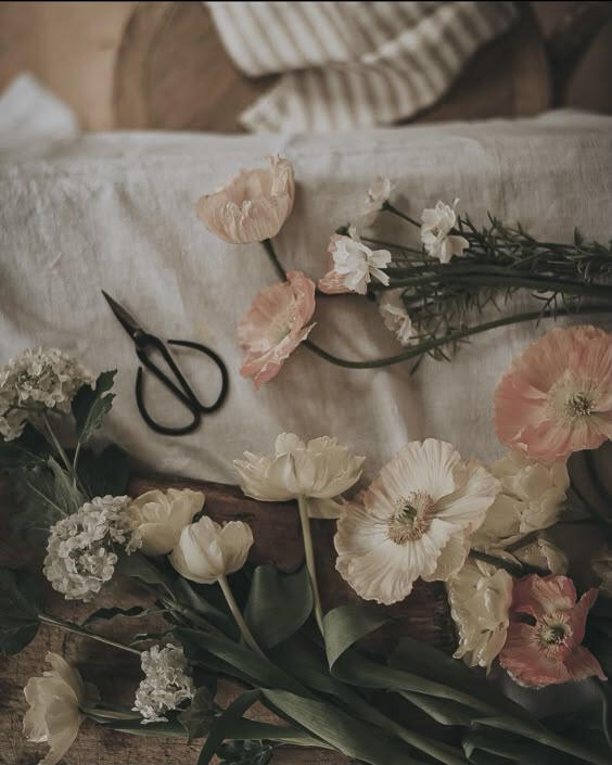 Wears pants, boots, and a button-up t-shirt when working at her flower shop or gardening.